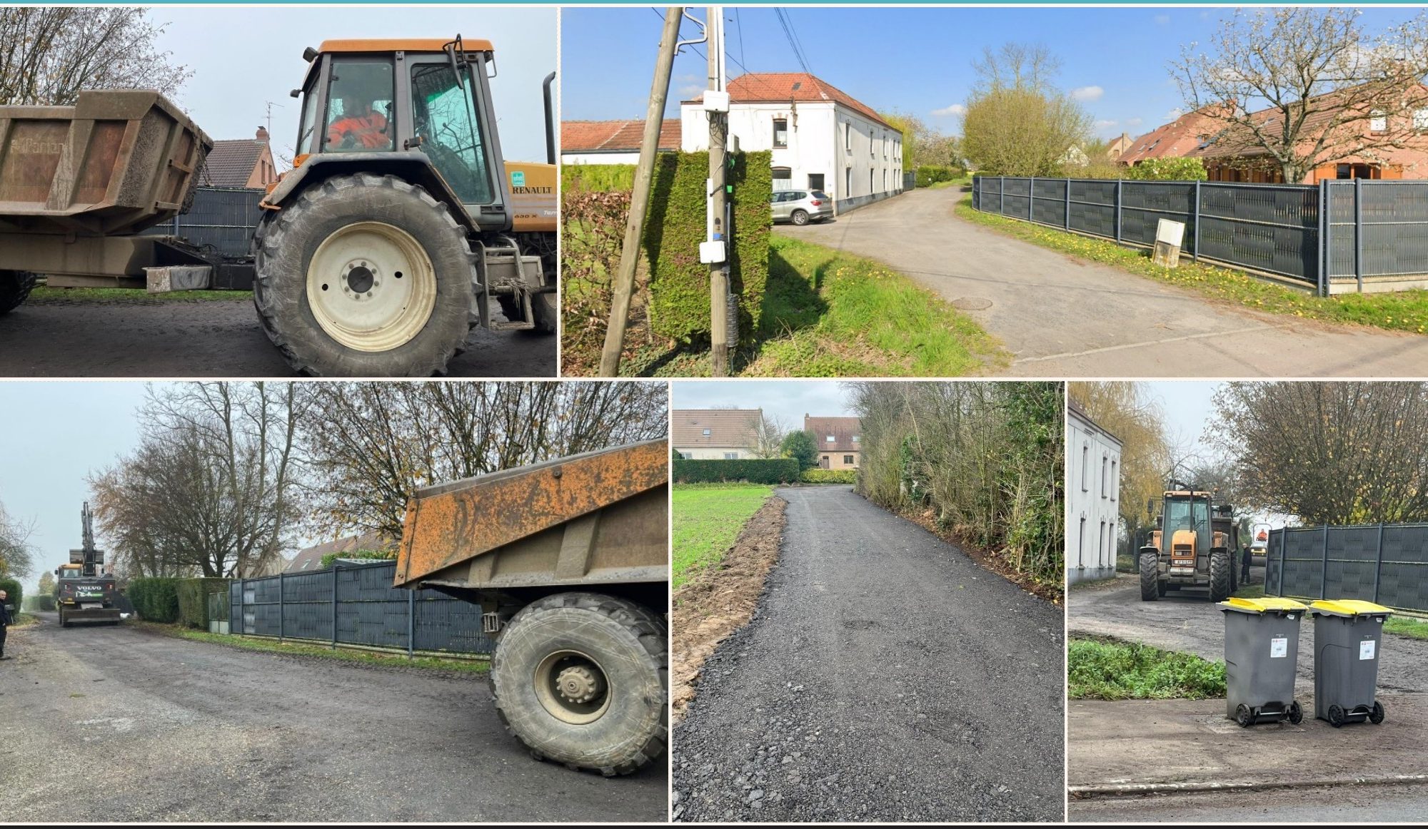 La Commune a récemment mené une opération éco-responsable en réutilisant 90 tonnes de rabotage de routes, récupérées dans le cadre des travaux de la rue du Moisnil. Ces matériaux ont permis de recouvrir environ 300 mètres linéaire du chemin rural situé rue Jean Jaurès, autrefois en terre battue, dans le prolongement de l’impasse visible sur la photo ci-dessous.