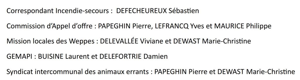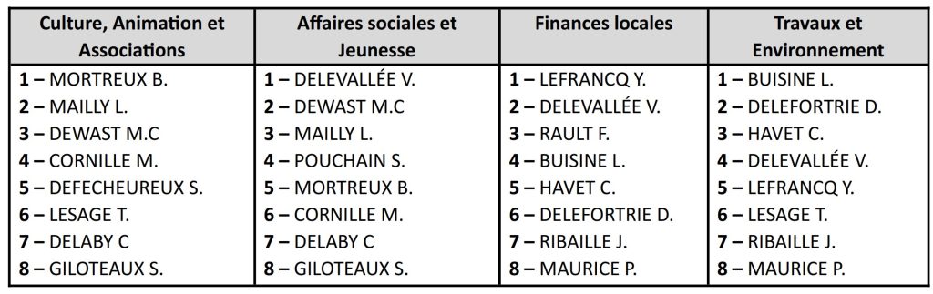 Chaque commission se compose de 6 ou 8 membres du conseil municipal.